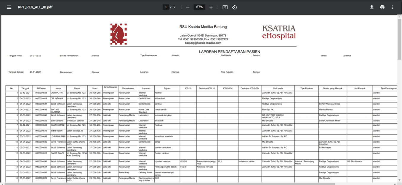 Login to the Ksatria eHospital system.