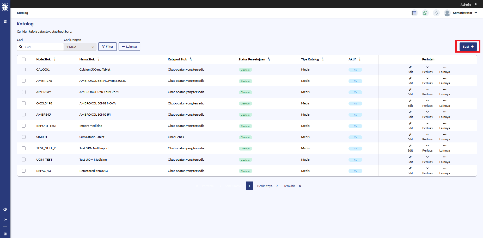 - Klik menu Katalog. Klik tombol Buat+.